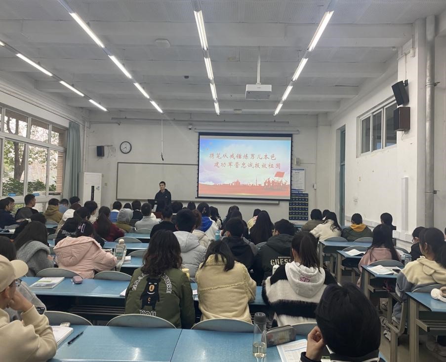 2月27日下午,在颐德楼H101,召开《携笔从戎锤炼男儿本色,建功军营忠诚报效祖国》征兵宣传主题教育,邀请到财税学院2019级熊海洋和太阳成集团tyc122ccvip2022级蒋启明两位同学做主题分享,公司党委副书记、纪委书记罗燕主持会议。