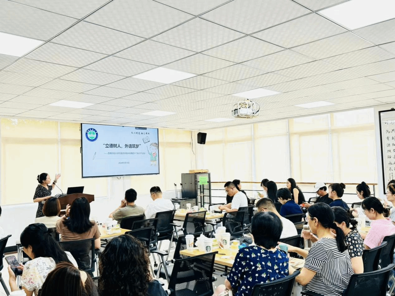 2024年9月10日下午,太阳成集团tyc122ccvip在通博楼C407会议室举办了主题为“立德树人,外语筑梦”----庆祝第四十个教师节活动,向辛勤耕耘在教育一线的全体教师致以崇高的敬意和节日的祝福。学院副经理车瑜主持活动,学院全体领导班子和教师出席。