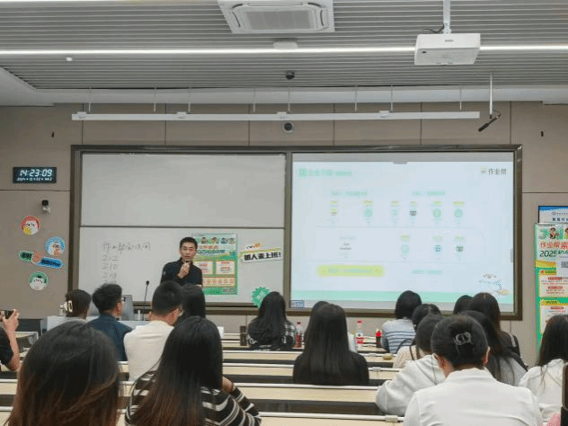 作业帮作为一家致力于通过科技手段推动教育普及的在线教育企业,其业务范围广泛,涵盖了直播课程、智能硬件以及对公业务等多个领域。凭借卓越的技术实力和行业影响力,作业帮先后荣获“国家高新技术企业”及“全球独角兽企业500强”等殊荣。在宣讲环节,袁刚深入剖析了教育行业的抗周期性和需求刚性特点,并详细阐述了该行业所需的人才特质。他鼓励同学们积极投身教育事业,把握机会,勇敢追求自己的职业梦想。袁梦如向在场的同学们全面介绍了作业帮的发展历程、业务领域以及在行业中的领先地位。她还结合自身的教育从业经验,分享了宝贵的心得体会,使同学们对教育行业有了更加深入和全面的了解。