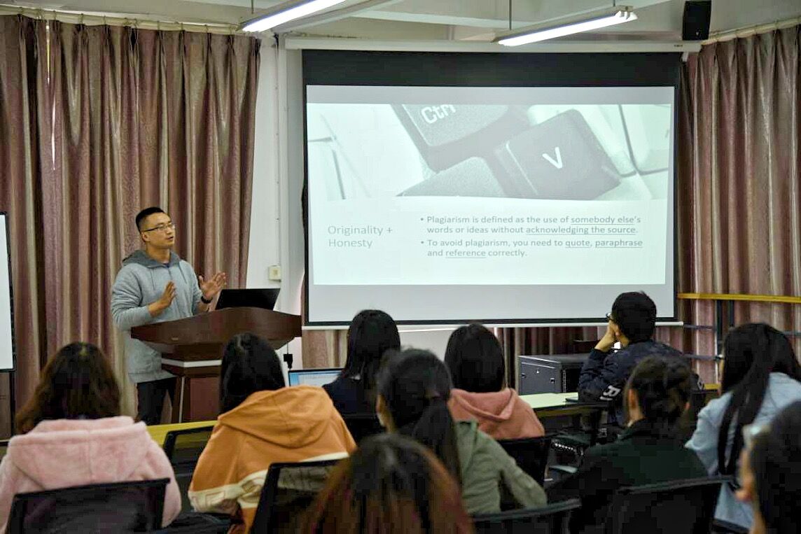 为了让同学们了解学术写作规范以及快速进行文献检索,公司于2021年4月15日下午16时在通博楼C407举办了“学术写作规范及文献检索”讲座。本次讲座由对外经贸大学商务英语硕士,新西兰奥克兰理工大学应用语言学博士——全智副教授主讲,学院的同学们积极地参与了本次讲座。