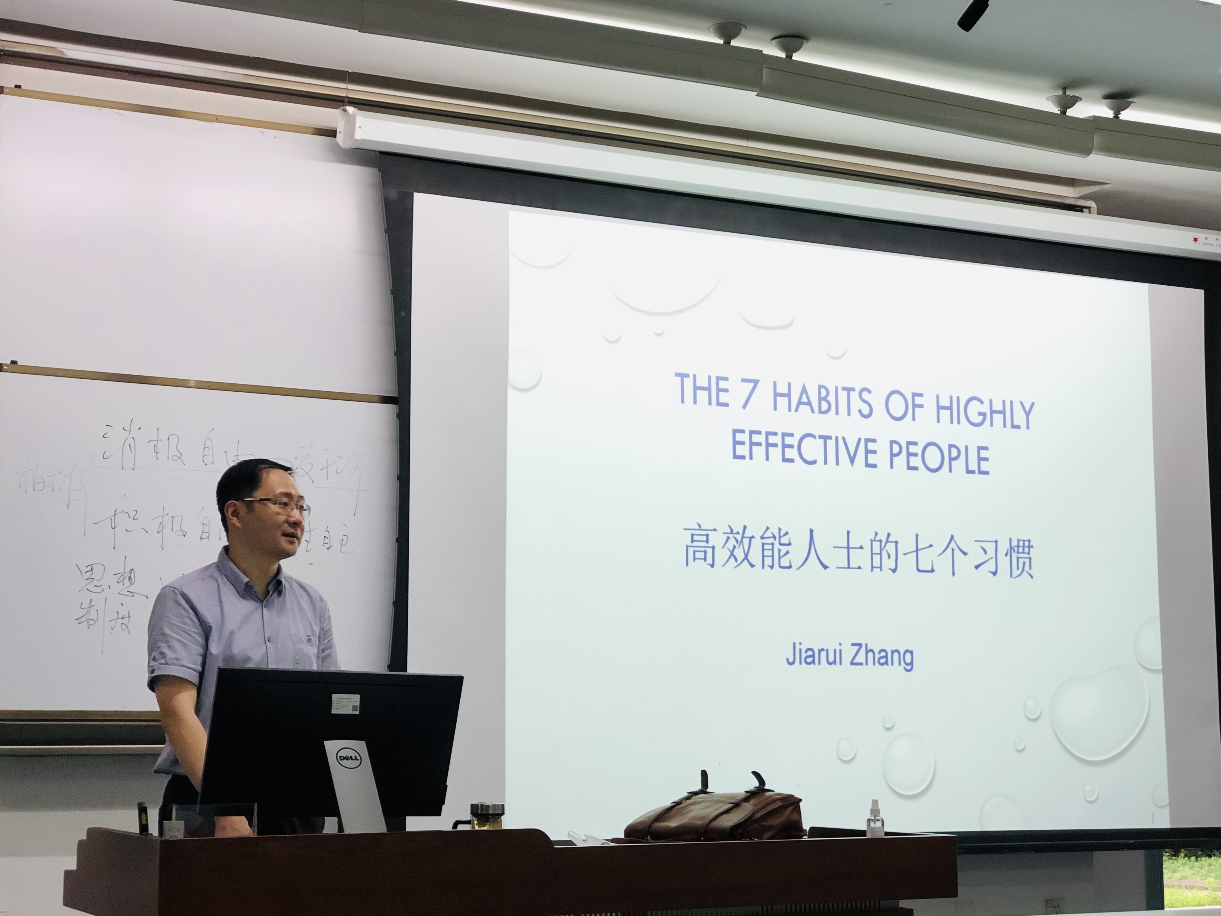 5月12日18:30-19:30,名著阅读《高效能人士的七个习惯》(The 7 Habits of Highly Effective People)读书报告讲座于经世楼F102教室顺利举行。本次讲座由经贸外语学院张家瑞经理主讲,2018级商务英语专业全体同学参加。